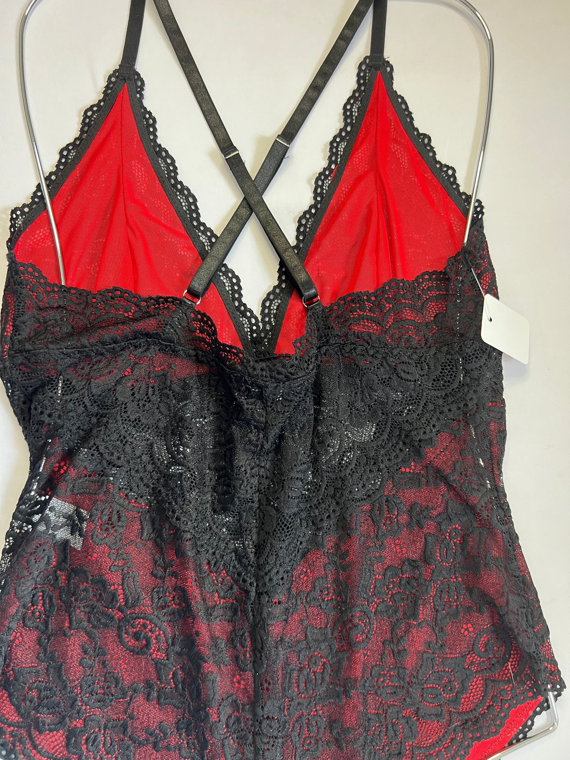 Wrap yourself in passion with this striking red and black lace bodysuit, designed to celebrate your curves with grace and allure. The delicate black floral lace overlays a rich red base, creating a dramatic contrast that’s both sultry and sophisticated.